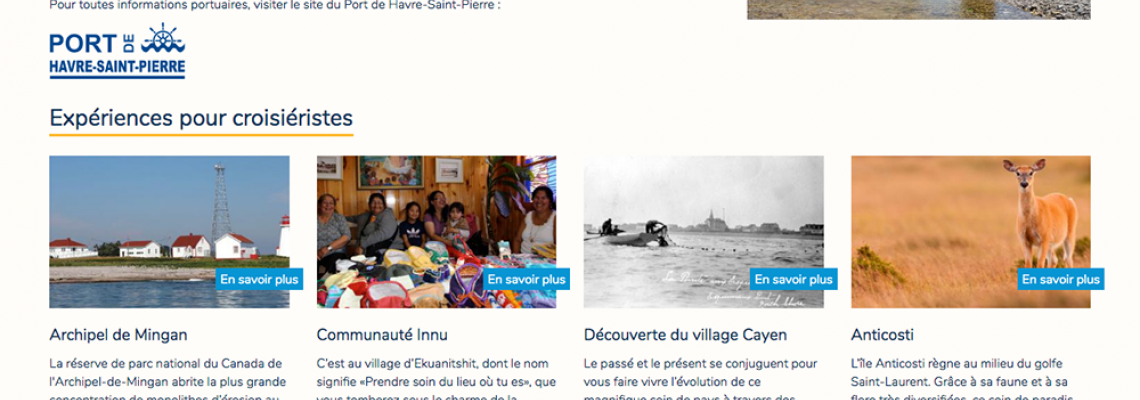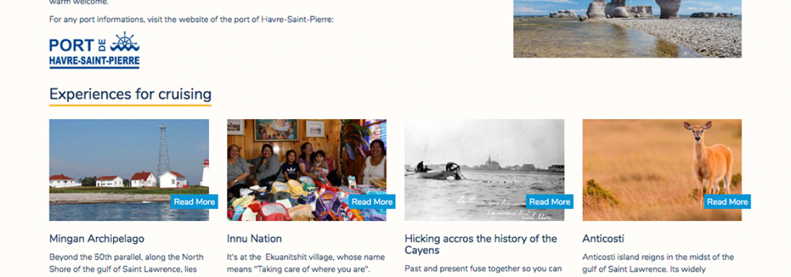 Réalisé en collaboration avec Orizontal Media, Rendez-vous Minganie est le site promotionnel du port de Havre Saint-Pierre auprès des croisiéristes afin de leur montrer toute la beauté et la diversité de la Minganie, un endroit aux paysages uniques au monde.